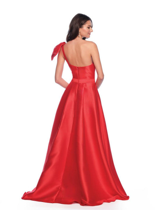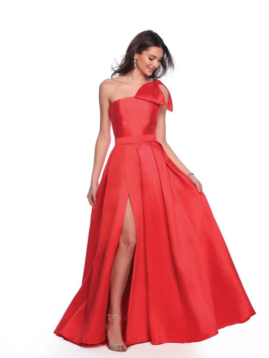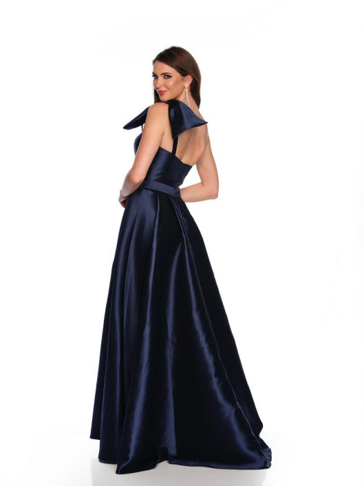 This ballgown will have you looking like a princess. Featuring a concealed back zipper and fitted top, the big bow and leg slit add a touch of style and sophistication. Capture your audience with this timeless, glamorous look.