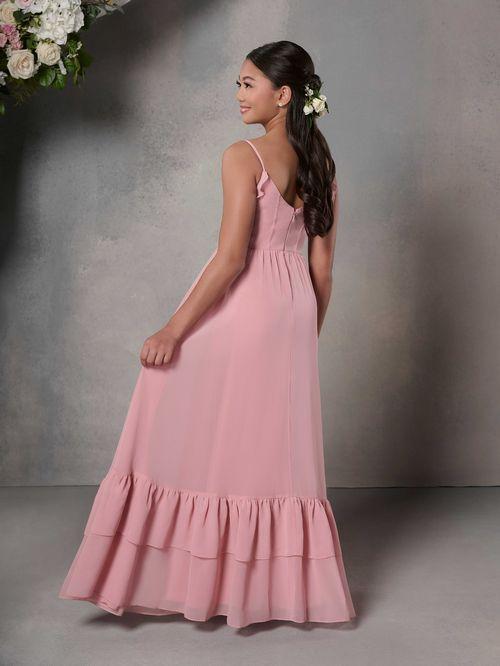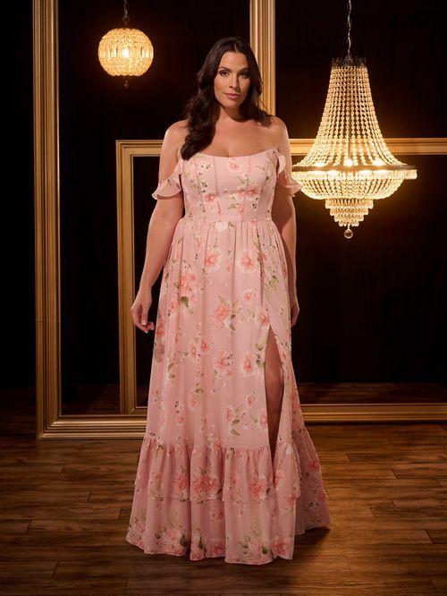 Elevate your formal wardrobe with this stunning House of Wu gown, where timeless elegance meets contemporary design. The structured corset bodice provides a flattering silhouette, while the flowing chiffon A-line skirt creates graceful movement. Delicate off-the-shoulder sleeves add romantic allure, and the ruffled hem introduces texture and dimension. Perfect for galas, weddings, or special occasions where refined sophistication is essential.