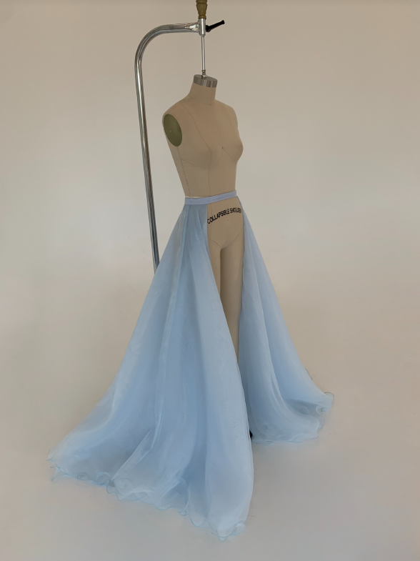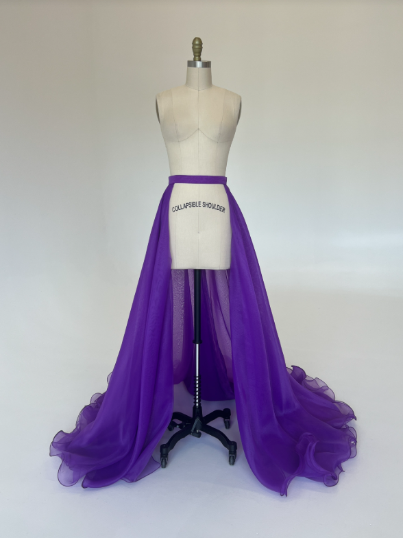 Elevate your ensemble with the Ashley Lauren 1740 organza overskirt, designed to add a graceful dimension to dresses, rompers, bodysuits, or jumpsuits. Featuring a structured wire hem, this overskirt creates a dramatic silhouette complemented by a sweeping train that flows beautifully with every step. Perfect for making a poised, memorable statement at any event.